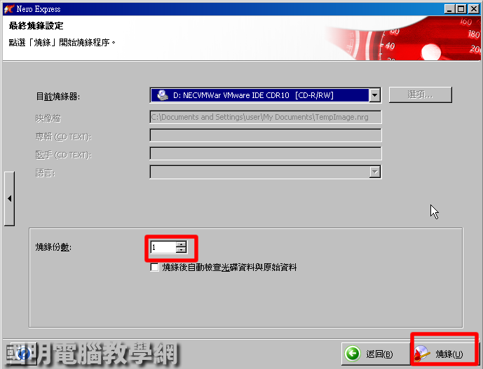 5)就會開始燒錄。完成後光碟片會自動退出。